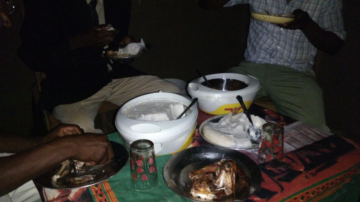Jantar na casa dos hóspedes. Chima com galinha assada.