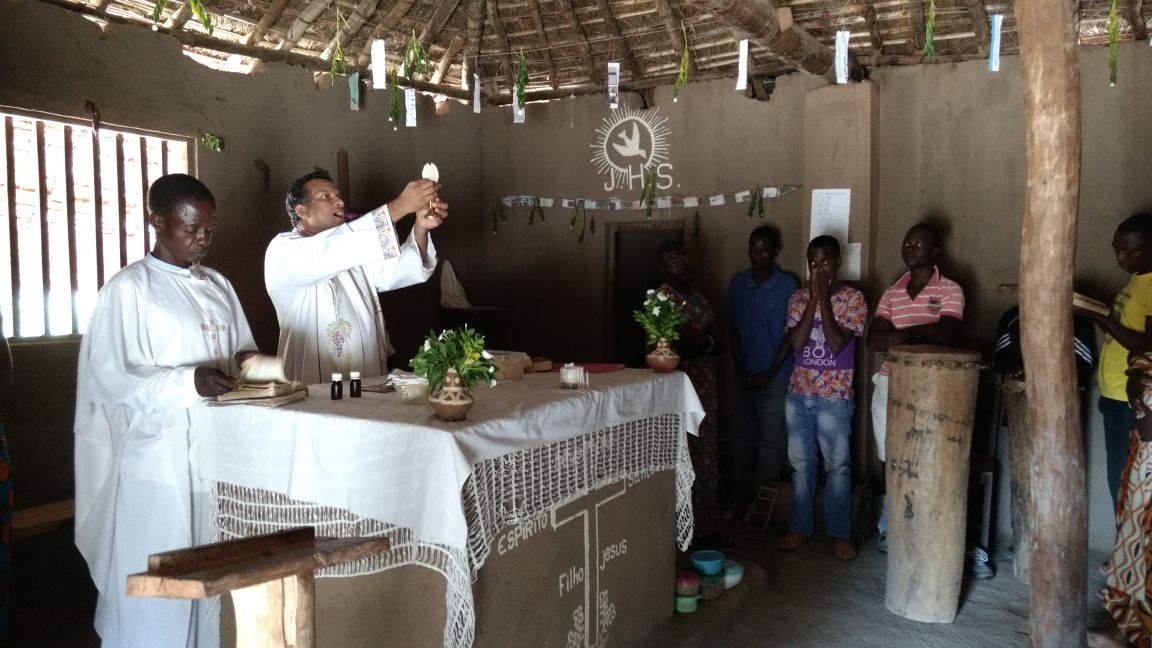 “As missas nas comunidades são celebradas em lomwe. É um despojamento pra mim. Entendo só umas três ou quatro palavras. Costumo tentar acompanhar o texto em português e repetir de cor o que sei da missa. Hoje decidi não fazer isso. Apenas celebrei com o coração e procurei ter comunhão com a fé daquele povo que participa do Sacrifício da Eucaristia tão raramente…”